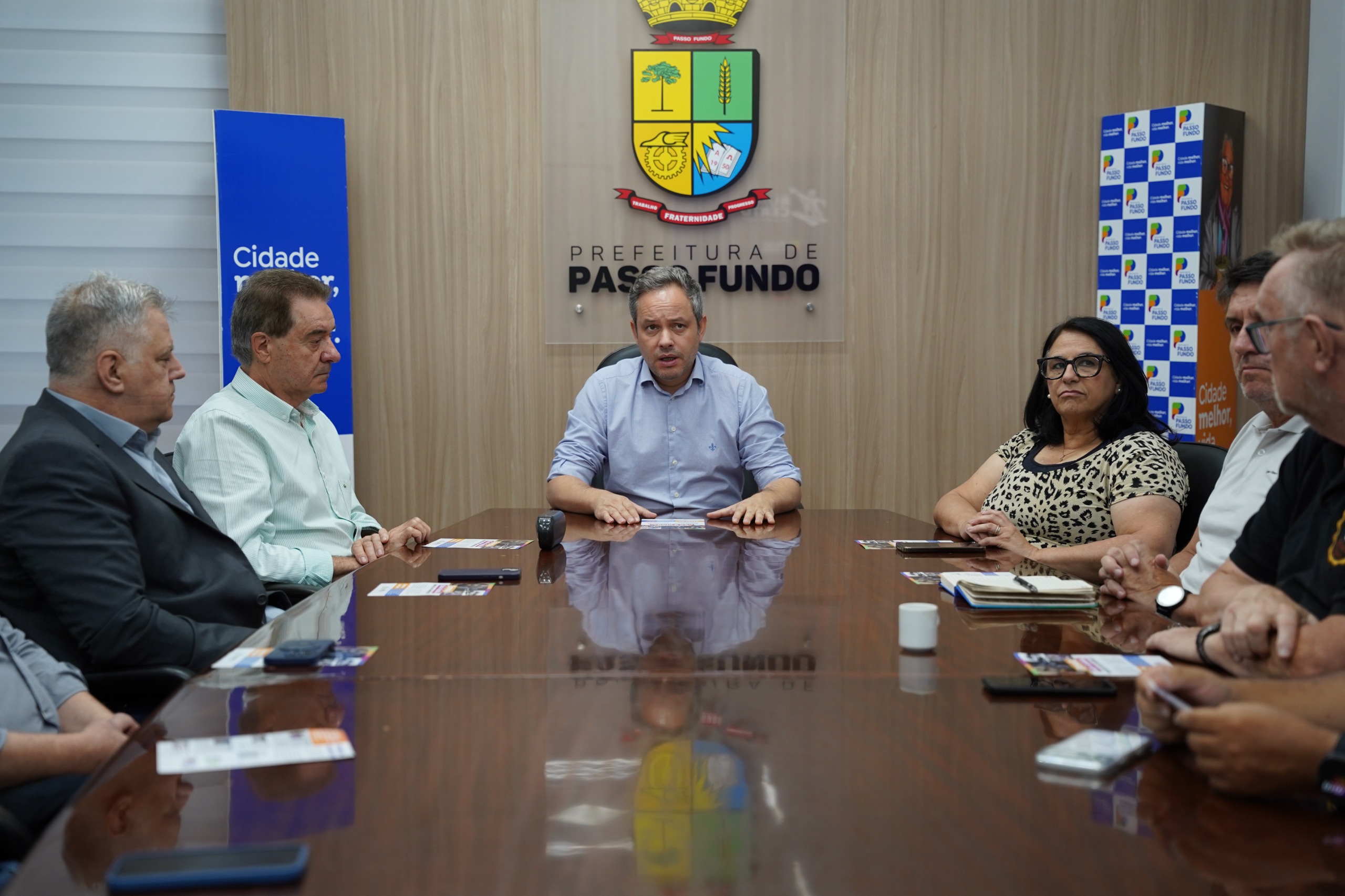 Comitê de Entidades Empresariais de Passo Fundo acompanha apresentação do programa Rumo Certo no Gabinete do Prefeito