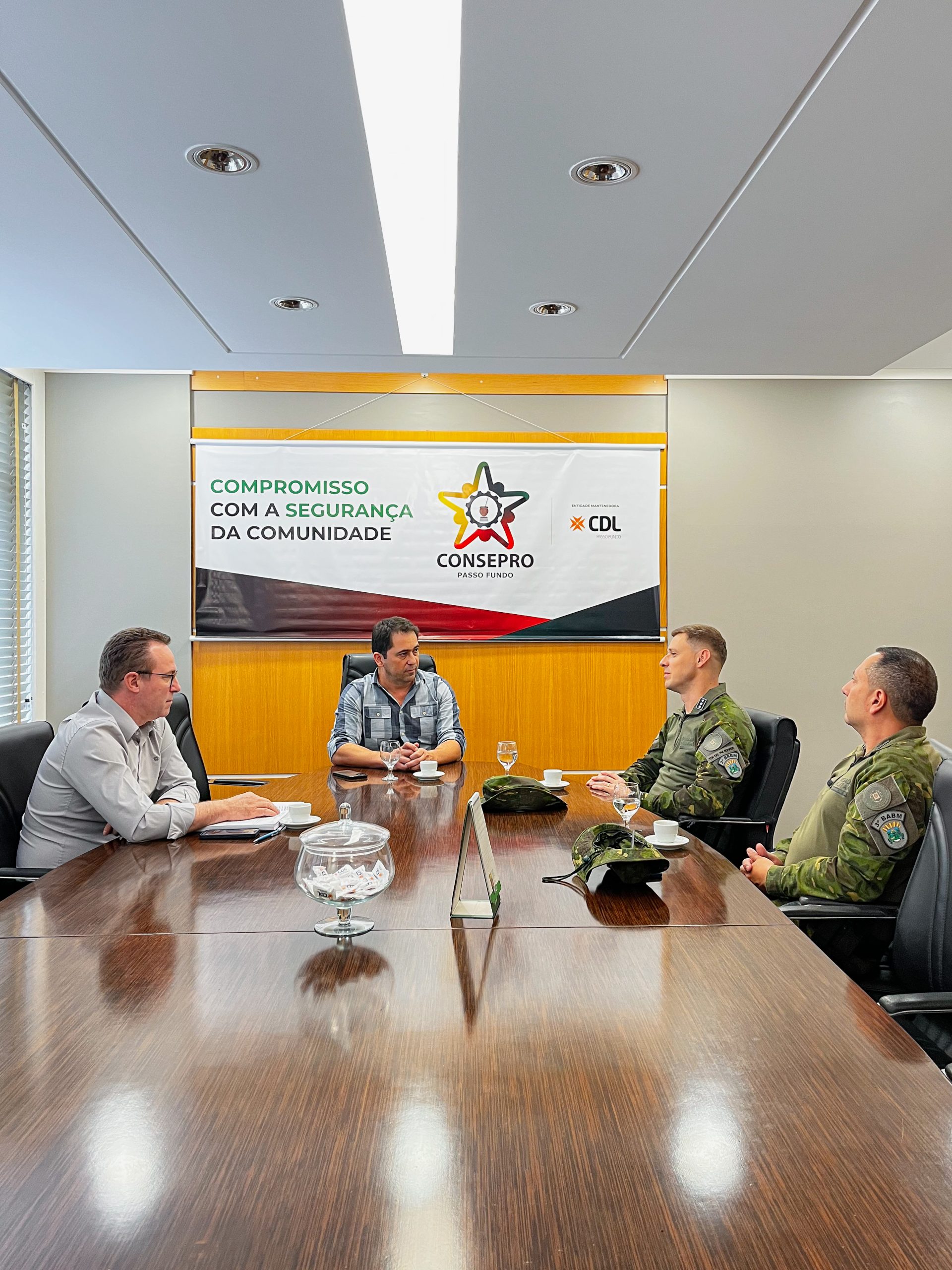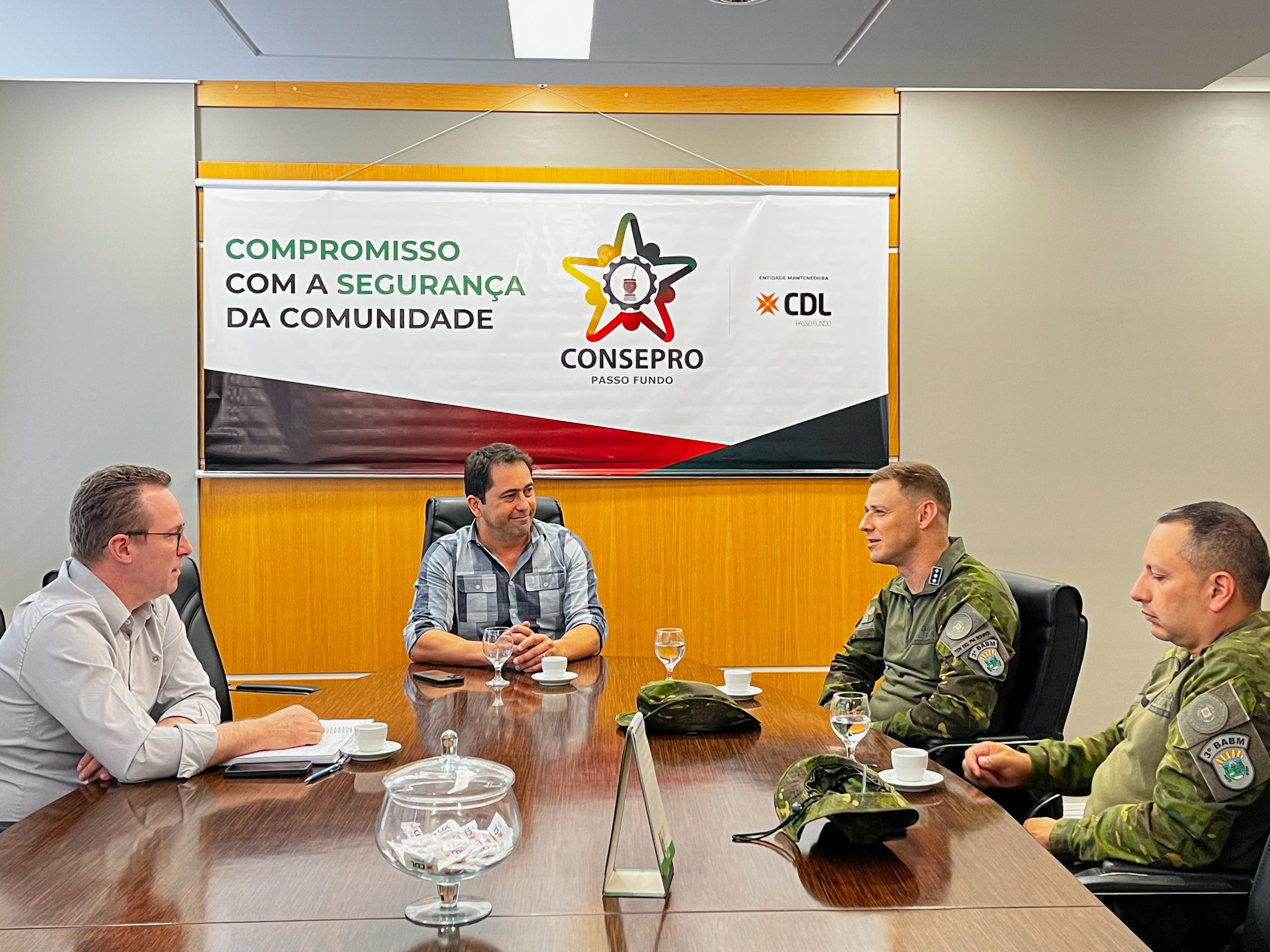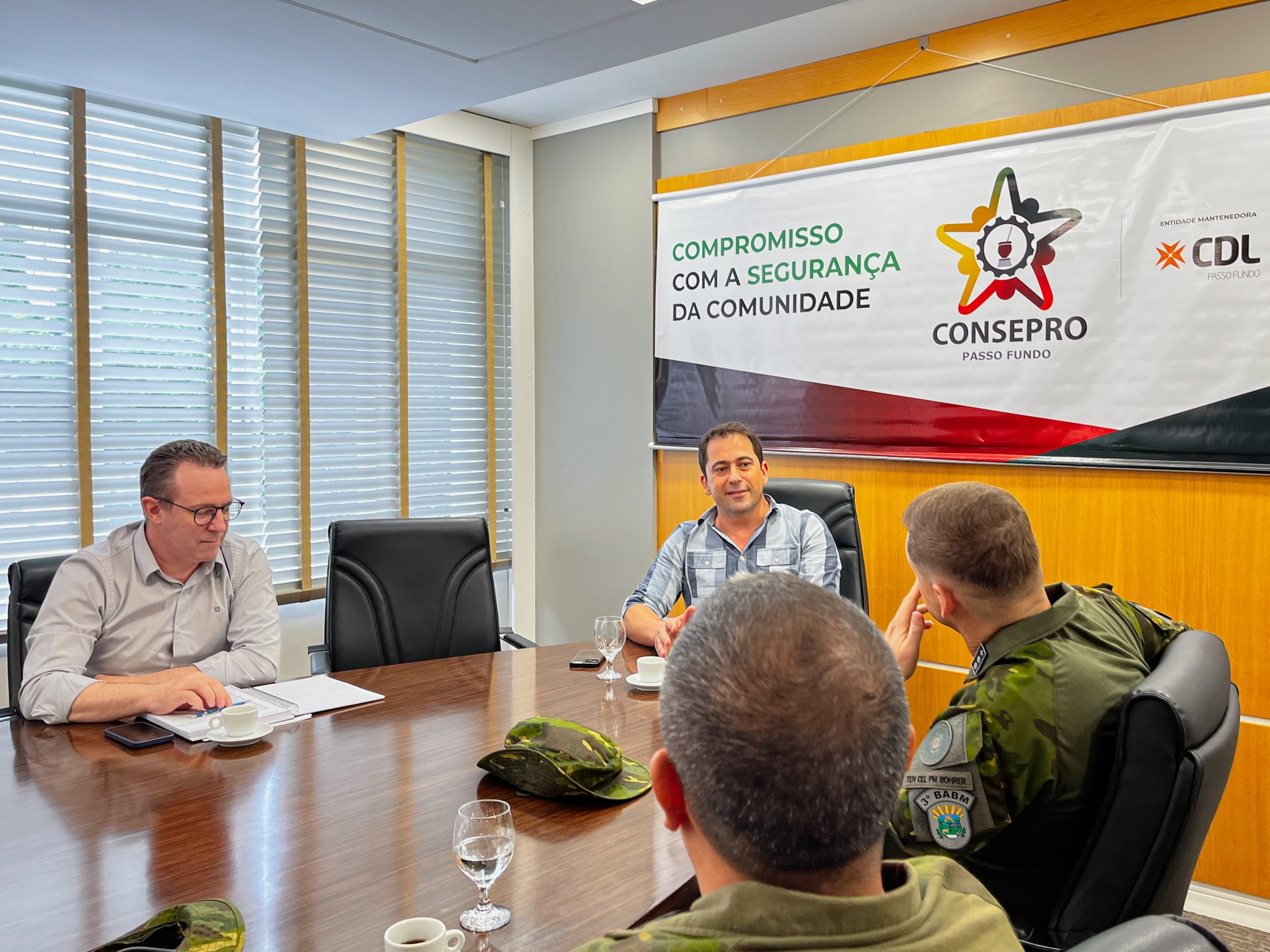 O encontro teve como foco a apresentação institucional do Batalhão e o alinhamento de pautas de interesse comum. Na oportunidade, Fernando De Carli destacou as ações desenvolvidas pelo Consepro nos últimos anos, especialmente o apoio permanente às forças de segurança e a atuação conjunta com o Comitê de Segurança Pública, a Câmara Municipal de Vereadores e a Prefeitura de Passo Fundo. Também colocou a entidade à disposição para colaborar com as demandas da unidade ambiental.